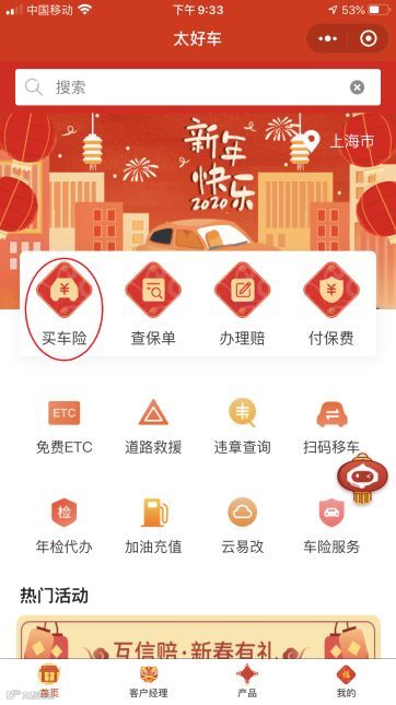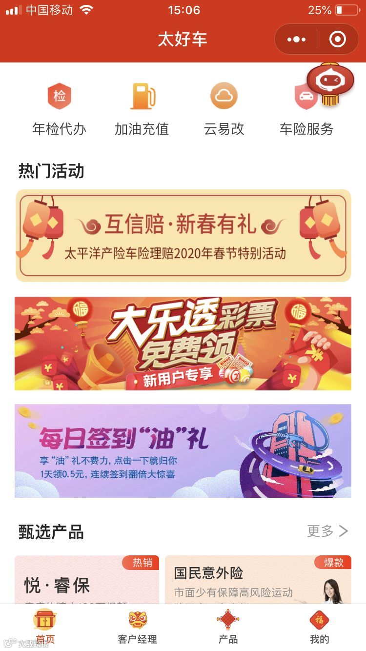 进入太好车,点击下方菜单栏“客户经理”项,领取一对一专属客户经理,投保咨询、保单答疑、理赔建议,线上找他线上解决。