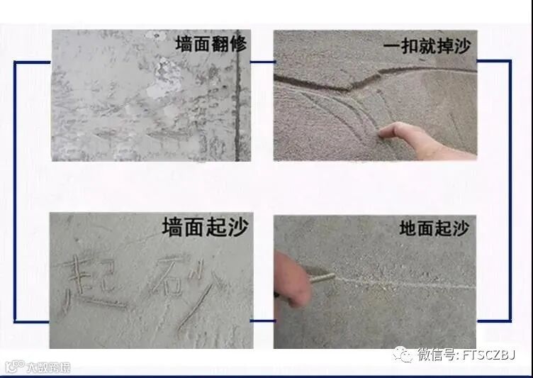 在民用建筑中,尤其以农村自建房地面、墙面起砂现象最为突出。不少农村自建房在建造时,只在地面打上一层混凝土,有的甚至只是一层水泥砂浆,时间久了会发现,地面上是扫不完的水泥灰和沙子。