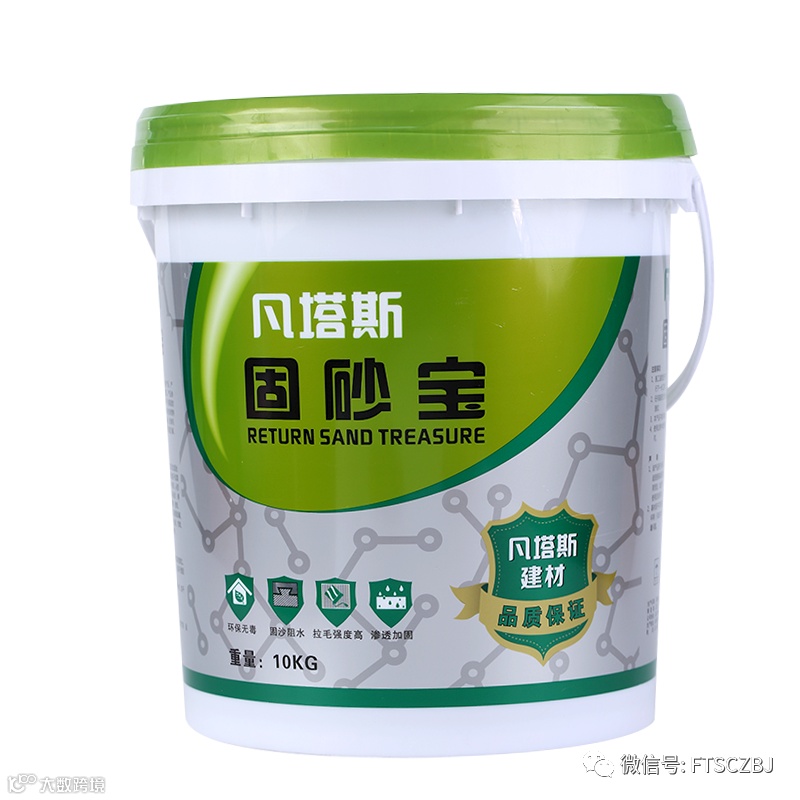 它的优点很突出:后期强度高,固砂效果好,能显著改善基层的界面性质,渗透性极强,封闭性极好,固砂宝涂刷后,用手抠不会掉粉掉砂。
