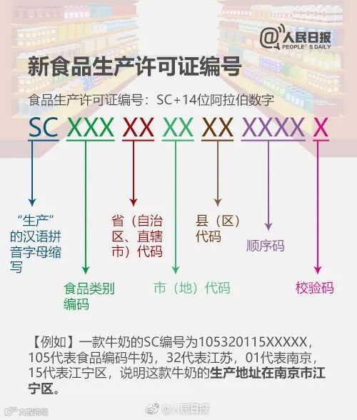 自2015年10月1日起,新的《食品生产许可管理办法》实施后,食品包装或标签上应标注新的食品生产许可证编号,即SC编码。这个编码取代了原来的QS标志,成为新获证及换证食品生产者必须遵守的规定。