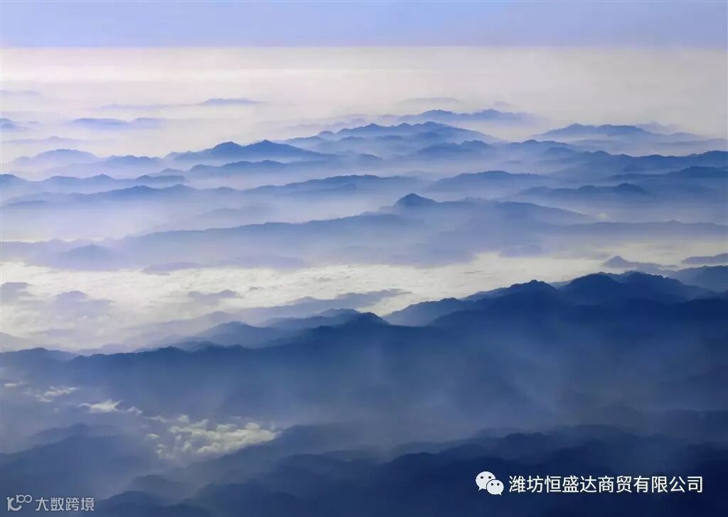 画面以青色和蓝色这两种同类色构成了冷色调画面,山上的雾气让画面富有一种神秘感,同时画面具有很强的空间感。