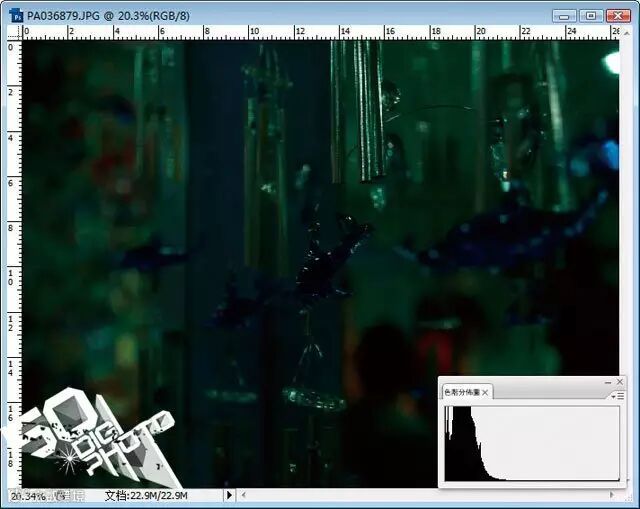 由于数位相机当中的色阶分布图不是非常的清楚,所以我们使用Photoshop当中的图像色阶分布图来进行说明,它们对于同样一张照片的显示是完全一致的。