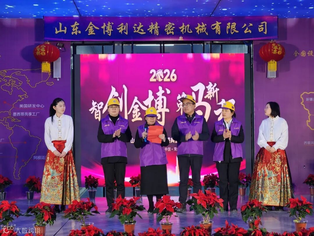 岁序更迭,华章新启。在2026马年新春来临之际,山东金博利达精密机械有限公司2026马年新年年会暨颁奖誓师大会隆重举行,全体金博利达人欢聚一堂,回首2025年的奋斗征程,见证荣耀时刻,立下2026年的奋进誓言,共赴全新发展征程。这场盛会既是对过去一年硕果的总结与表彰,更是对未来发展的展望与动员,让全体家人在凝心聚力中汲取前行力量,以策马扬鞭的昂扬姿态迎接新岁挑战。