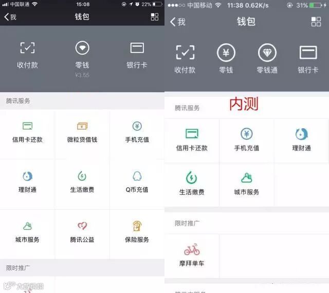 在微信“钱包”页里,最新的内测版本较之前多了“零钱通”。零钱通与支付宝中的余额宝类似,零钱中的余额可设置转入零钱通,享受货币基金收益。