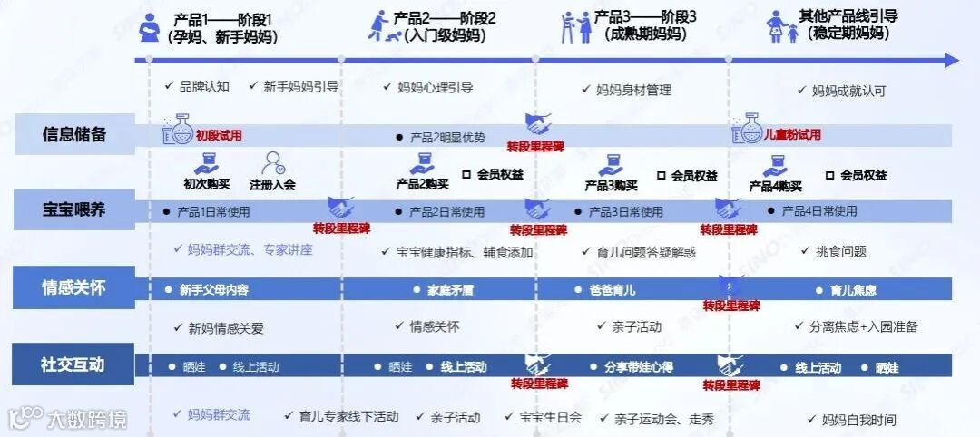 ③以知识培育切入,自宝宝出生后对宝宝和妈妈分别进行个性化情感向关怀、圈子营销,覆盖用户全生命周期旅程,实现全自动化营销转化。