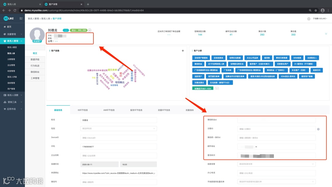 在SOLIKE中,我们开启了匿名用户入库的规则,且在匿名用户入库时,可以和广告流量相结合打通,获取匿名用户的广告来源,通过广告来源获知用户的搜索渠道、以及搜索关键词,通过搜索关键词锁定潜客意向。