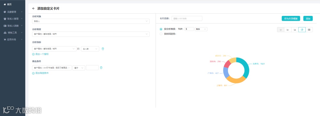 3、产品内集成了专业的BI工具,对于复杂卡片可自行配置。