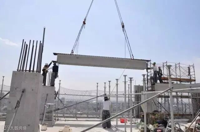 ▲ 运输到楼层准备安装的墙板