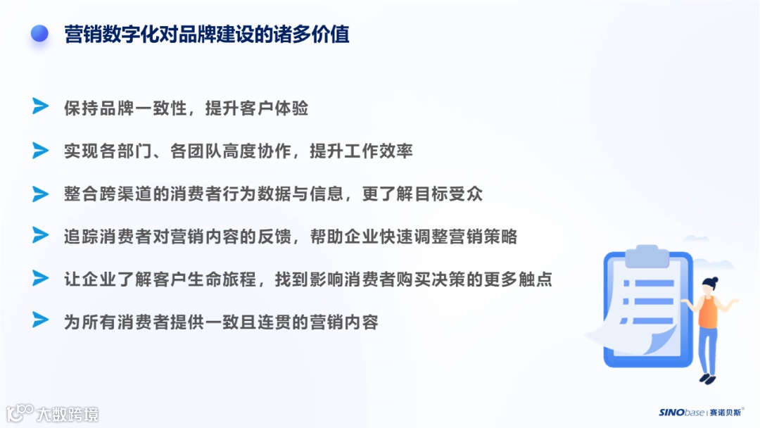 此外,营销数字化在品牌力提升方面,还有更多贡献。整合跨渠道的消费者行为数据与信息,可以帮助企业更为细致地了解目标受众,并以此为依据进行业务、营销活动的改善和提升;追踪消费者对营销内容和活动的反馈,能帮助企业快速调整营销策略,实现品效协同;营销数字化还能帮助企业更清晰地了解客户生命旅程,找到深刻影响消费者购买决策的更多触点,从而进行更有针对性的营销工作,实现业务增长。