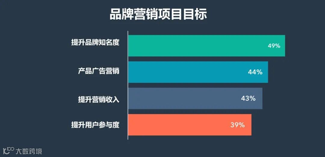 为何短视频成为如此火爆的营销阵地?其实并不难理解,To C品牌2022年营销活动的三个关键指标,分别是提升品牌知名度(占比49%)、产品知名度(44%)和增加收入(43%)。