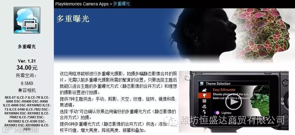 索尼微单相机的多重曝光功能需要单独安装“多重曝光”的应用程序。