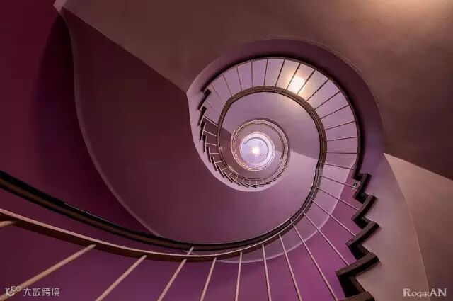 如果再配上迷离大胆的色彩,螺旋而上的楼梯仿佛叫人置身爱丽丝梦游仙境般梦幻。