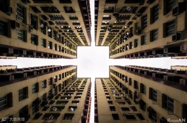 这四方之间无数楼宇冲向云霄,究竟是囿于钢筋森林还是希望就是上方?万般情绪酝酿在一根根横冲直撞的直线里,值得玩味。