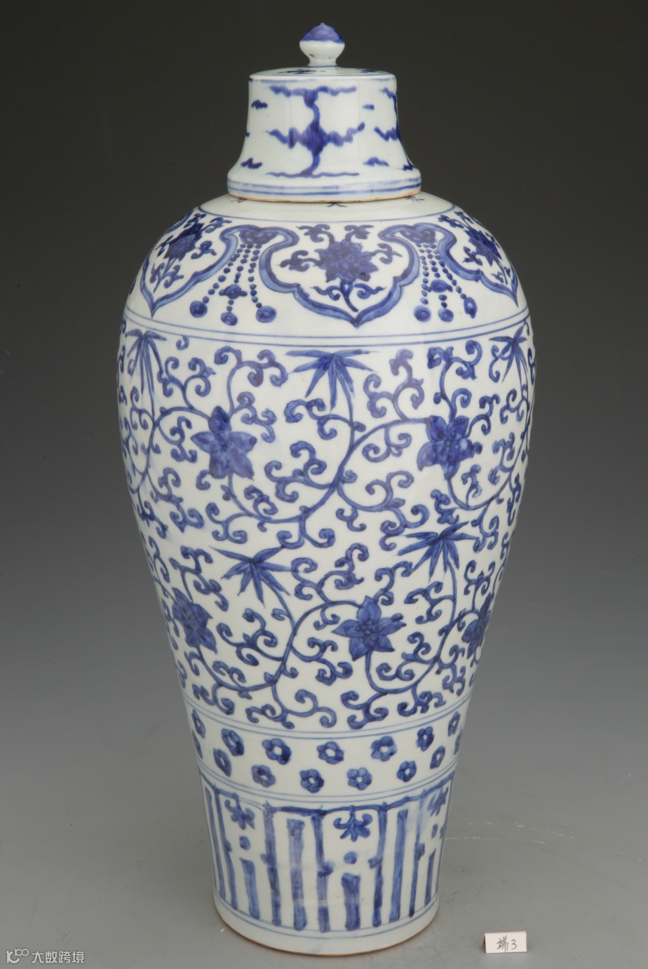 万历年造金盖金碗托青花缠枝花卉纹碗