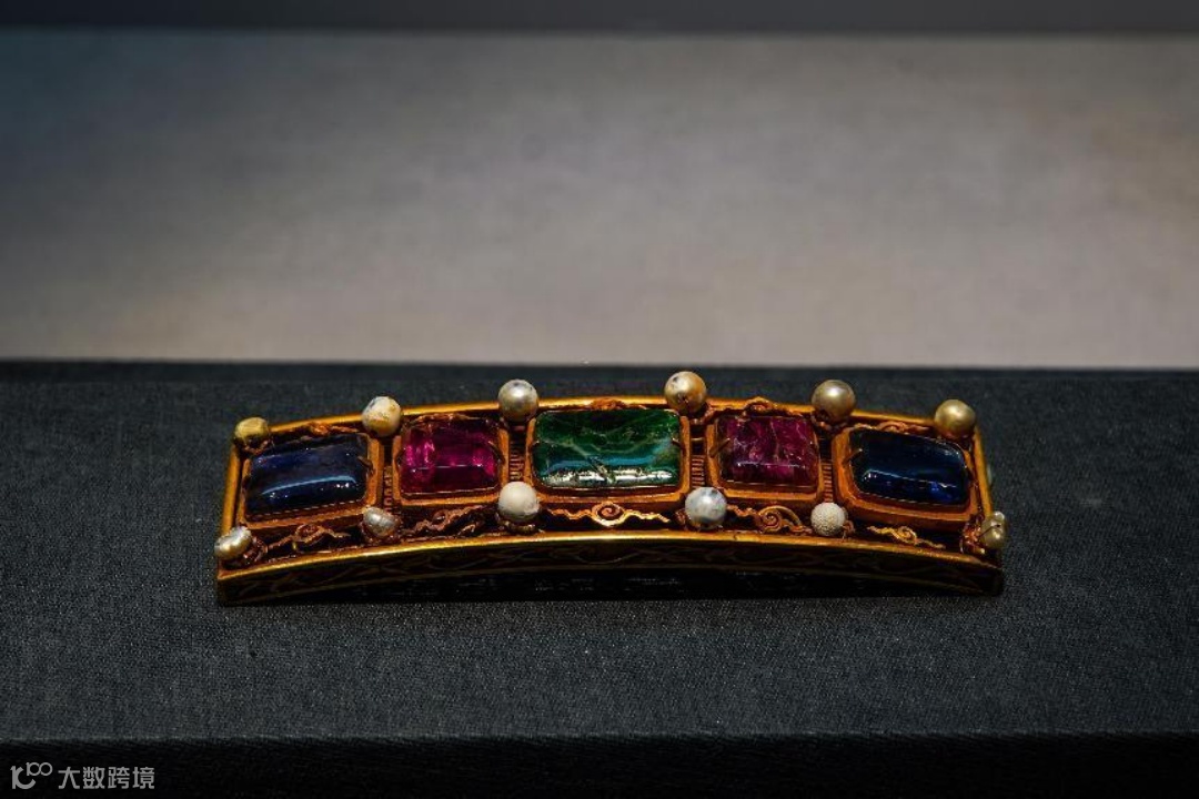 鎏金花卉纹嵌红宝石带扣