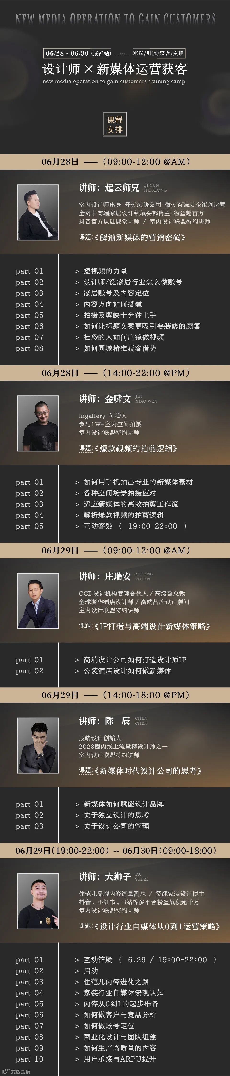 起云师兄,室内设计师出身,开过装修公司,做过百强装企策划运营,全网家居设计百万粉丝博主,室内设计垂类IP导师,抖音官方认证课堂讲师。入局自媒体10多年,从2013的图文时代到拥抱短视频时代,三年成长沉淀为全网室内设计实景头部 IP,全网粉丝超150万,累计中高端家居实景赛道播放量超10亿。