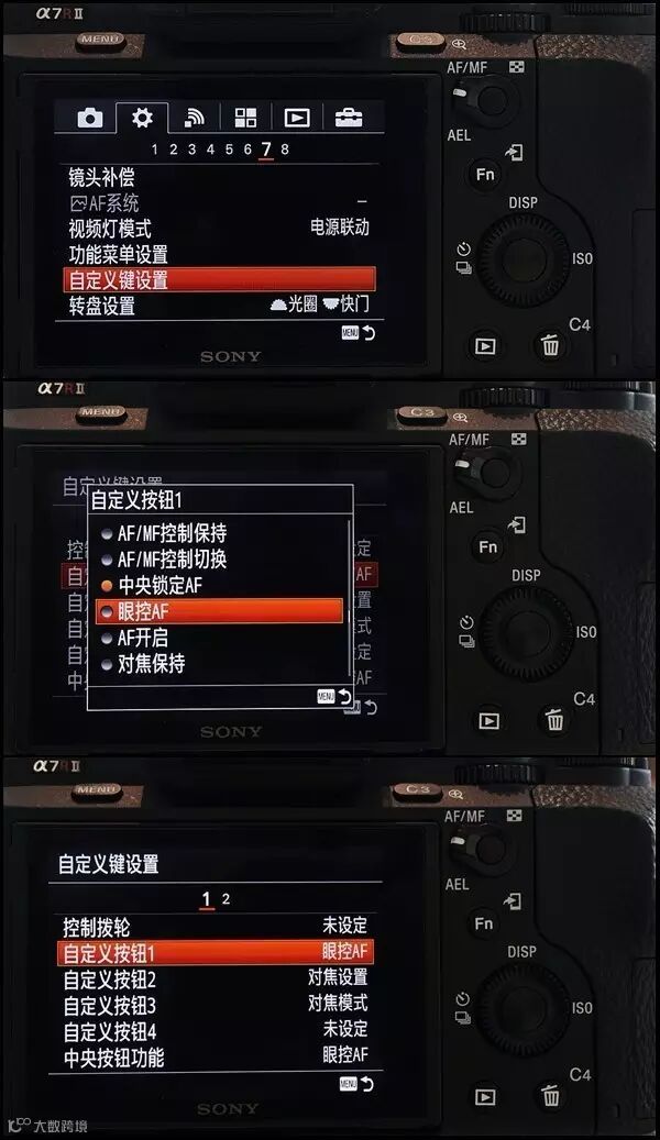 MENU菜单-自定义键设置-将自定义按钮1设置为眼控af快捷键
