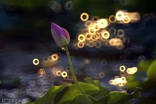 如上图,在逆光下,背景荷叶上的雨滴变成了层层光斑,簇拥着娇艳的荷花,散发出梦幻般的光芒。