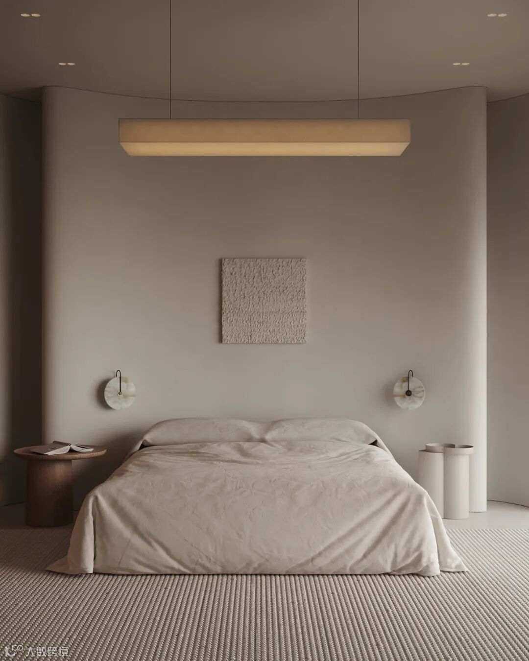 进入卧室,我们的设计旨在创造一个宁静内敛的休息空间。浅颜色为基调,让人得以休息和放松。墙壁上柔软的浅灰色或米色,床上用品是匹配的,没有不必要的细节。简约的照明灯具,如墙壁烛台或吊坠灯用干净的线条,给房间现代感。大型电视挂床对面,也提供了一个美丽的角落,让卧室不仅舒适而且拥有更多功能。