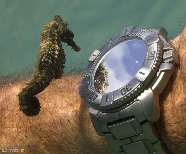 海马盯着潜水玩家的手表