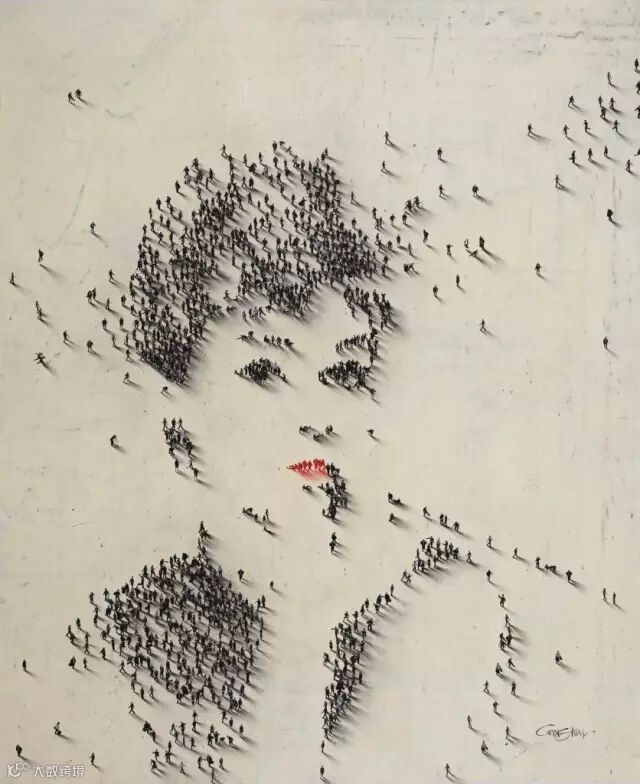人们在广场上排成一幅奥黛丽赫本的肖像