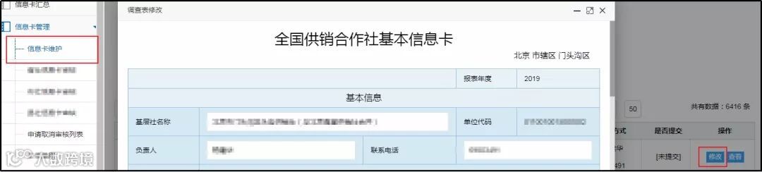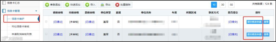 对于已审核的信息卡,县社或直报基层社提交了“修改申请”,省市社可以 统一查看,集中取消审核。