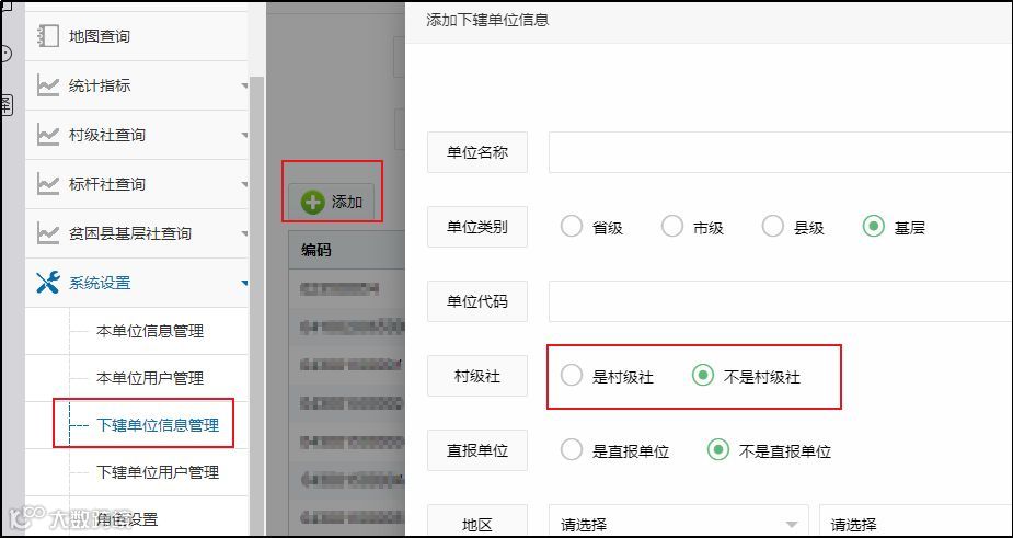 系统设置→下辖单位信息管理→添加。