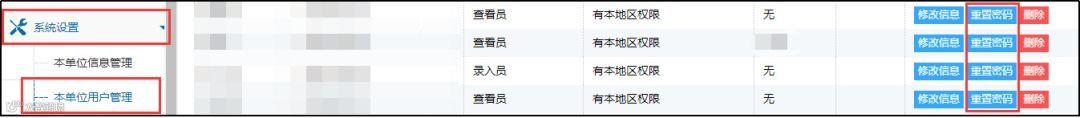 系统设置→本单位用户管理→重置密码。