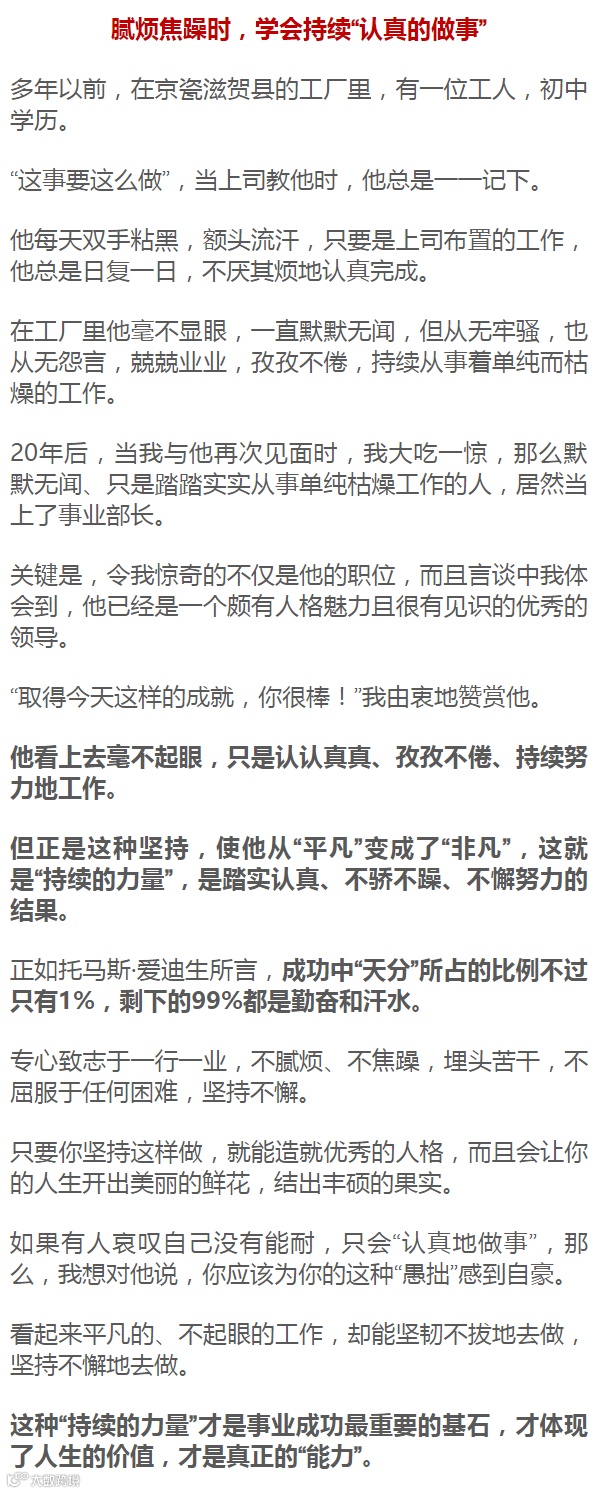 每天,哪怕很少一点,也要在“创造性的工作”上下功夫。即使一天的进步微不足道,但若经过十年的积累,就一定可以孕育巨大的变化。