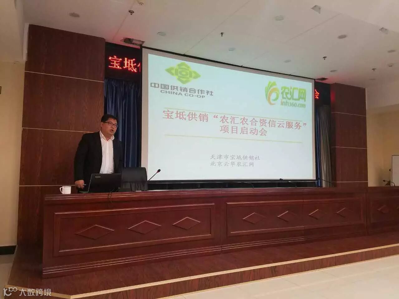 签约仪式之后,双方又在会议中心举办宝坻供销“农汇农合资信云”项目启动会,宝坻供销副主任劝宝公司董事长杨景奎首先发言,他表示宝坻区是一个农业大区,农产品经营主体多、种类全、产量大而且宝坻区靠近北京,有着农产品供应天然的区位优势,但是目前农产品无标准、直供少,同时他讲解了劝宝公司的农产品需求现状,目前有劝宝广场、500店以及宝坻区高校、机关单位食堂等大量的订单客户,可是批发市场的农产品,无分级、无质量追溯不符合订单农业的要求。他很期待和北京云华农汇网关于“农汇农合资信云服务”的合作,挖掘高质量的农民合作社加盟成为直供基地。