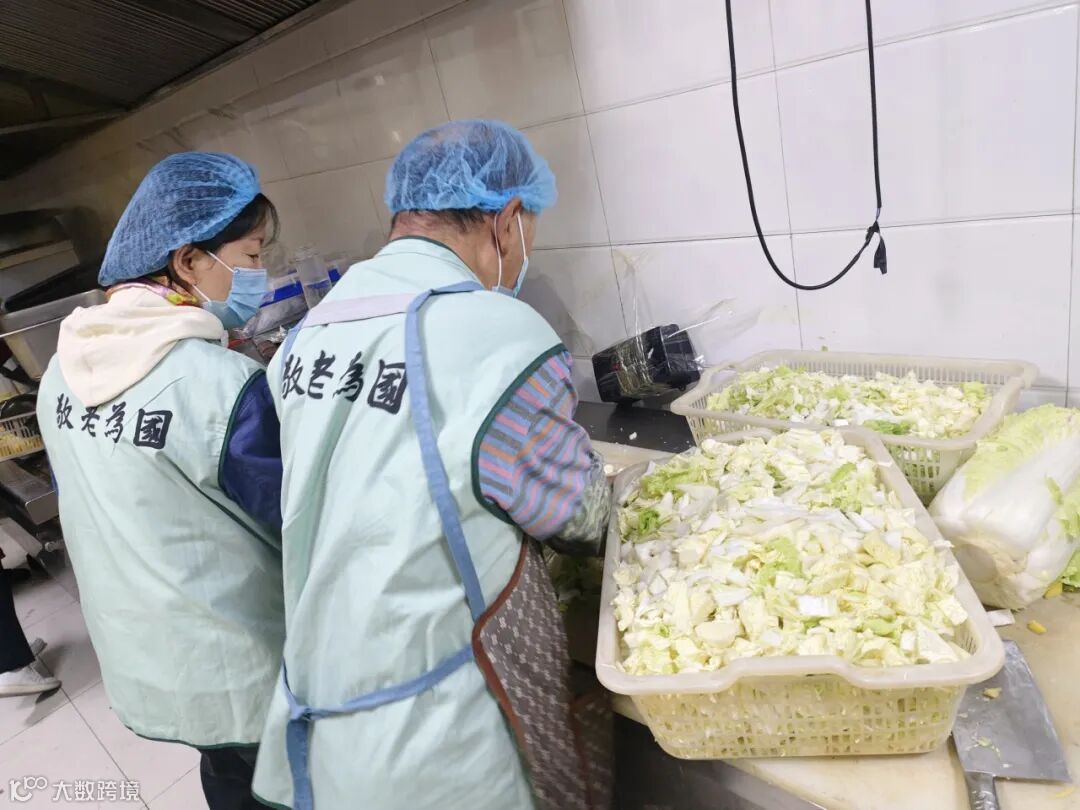 在忙碌的后厨,志愿者们洗净双手,戴上口罩,化身“专业大厨助手”,洗菜、切菜、备菜、整理、清洁,每一个步骤都承载着对老人健康的细致考量。