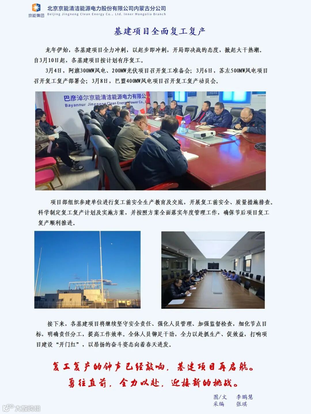 京能清洁能源内蒙古分公司于2019年8月22日注册成立啦,掀起了融合改革的新篇章。初心不忘,步履不停,站在新的历史起点,挑战才刚刚开始。小伙伴们,让我们携手并进,乘风破浪,共同创造新辉煌!