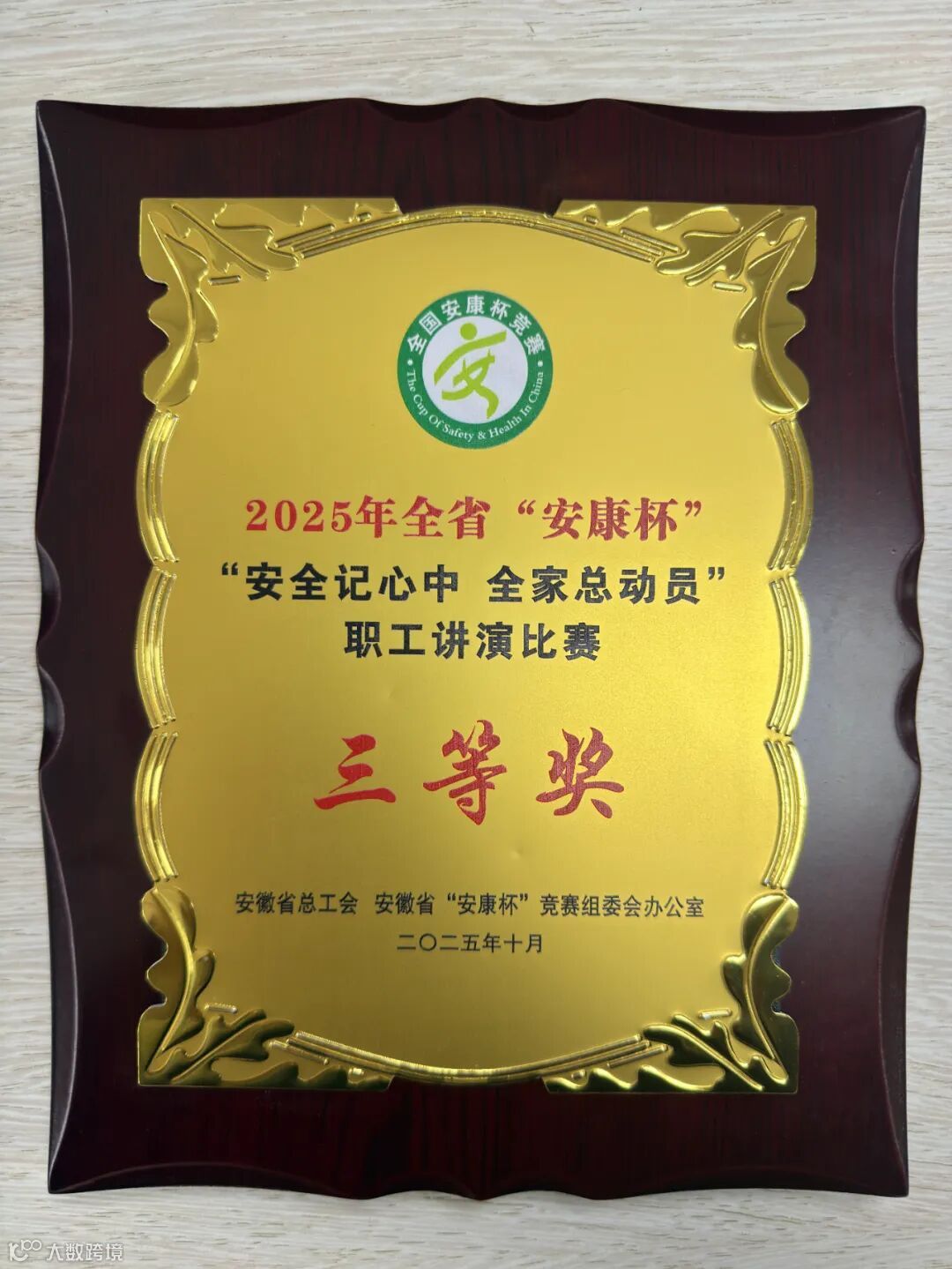 近日,2025年安徽省“安康杯”“安全记心中 全家总动员”职工讲演比赛在淮南举办,江南化工职工孙强凭借其作品《安全铸魂 承诺如山》在比赛中荣获三等奖。