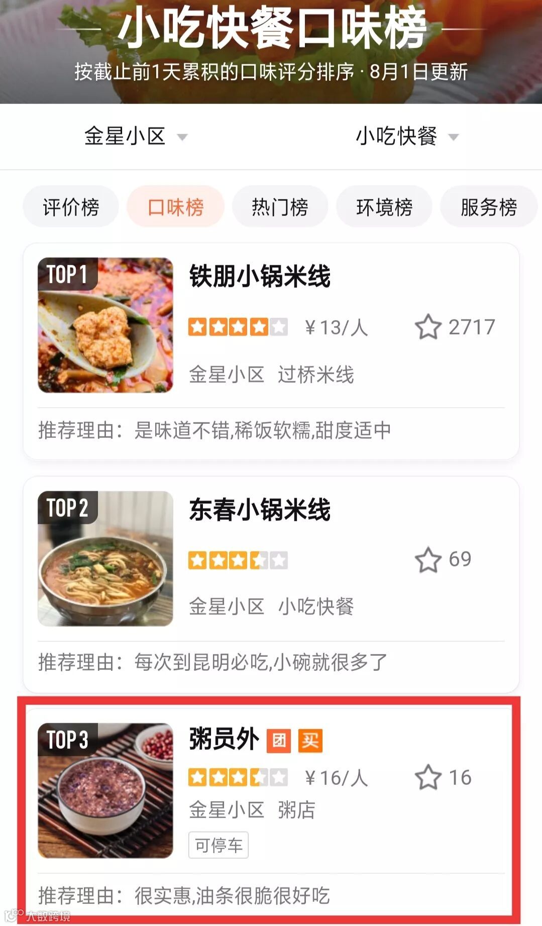 顾客对他们的餐品品质和口味都非常满意,回头率高,且在大众点评口味榜排名TOP3。