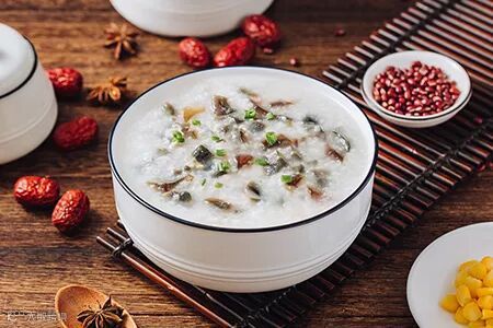 粥浓稠,材料新鲜,分量足,荷包蛋煎得很嫩,米糕现蒸热卖,味道超好哟!