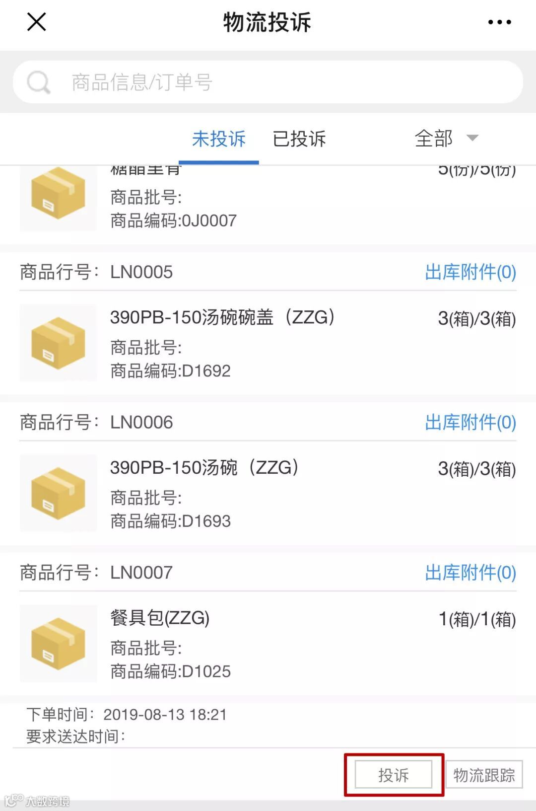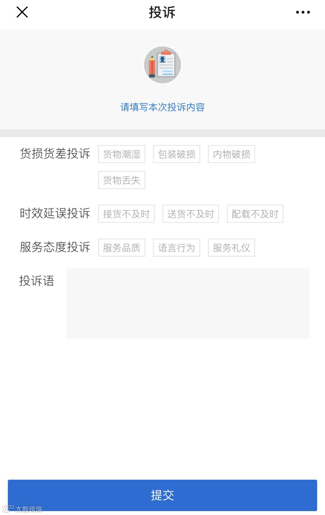 点击【物流投诉】——【未投诉】——【投诉】,填写投诉内容即可