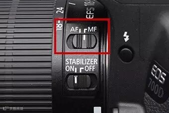在全黑的室内拍摄时,使用自动对焦无法合焦,需要切换为手动对焦。将EF镜头上的对焦模式开关置于“MF”。