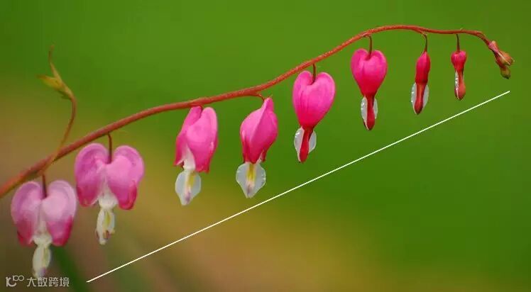 不同的花可以用不同的构图方法,例如对角线构图。