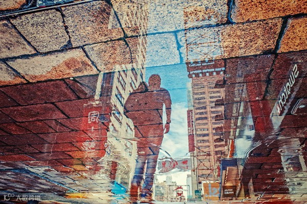经过雨水的洗涤,城市的街道也充满了清新的气息和缤纷的色彩,积水倒映出了一个全新世界。