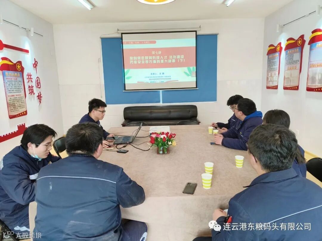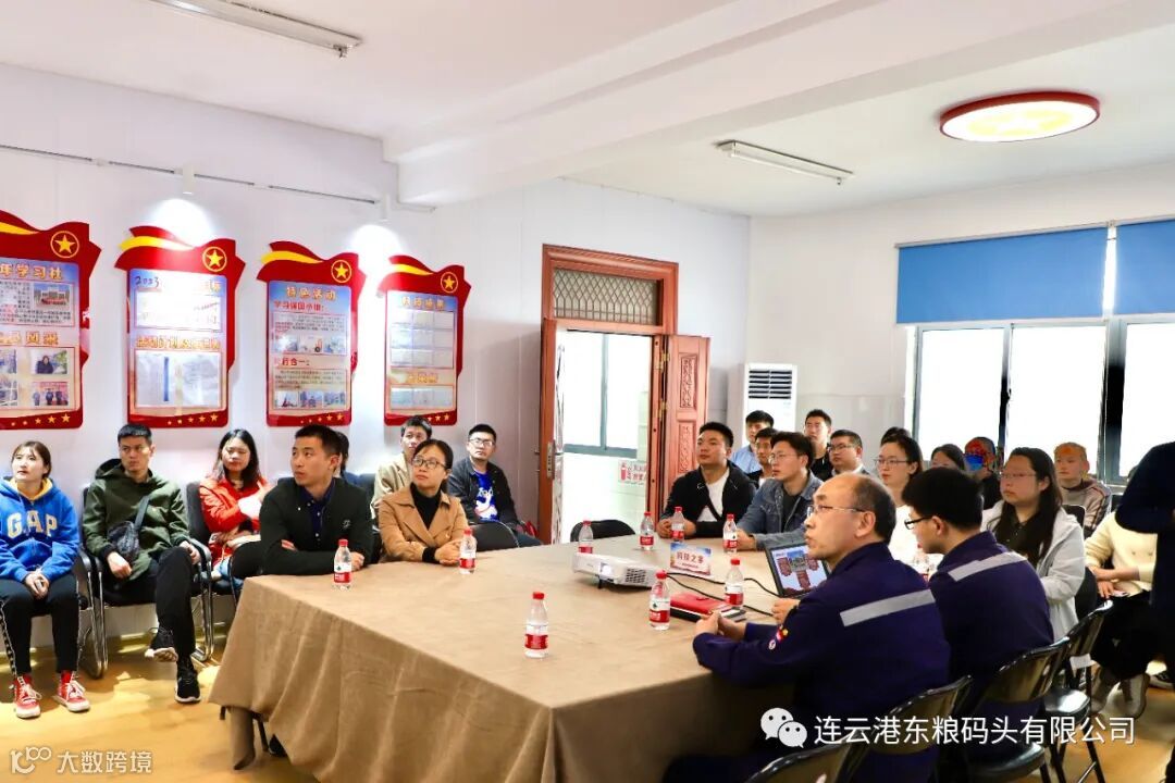 连云港东粮码头有限公司4月28日下午, 栋梁先锋青年学习社迎来交通局团委一行四十人,此次的交流也是青年学习社活动阵地初次亮相,团委副书记王康兴作“青春铸魂,擦亮奋斗的青春底色”的主题交流。