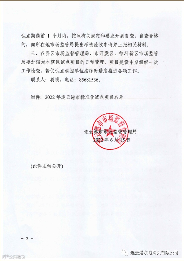 近日,连云港市市场监管局下发文件,东粮公司入选“粮食智能化储运标准化”试点项目,全市仅十家,东粮公司将以此为契机,提升公司粮食装卸、仓储、发运服务效能,为公司后续建设智慧筒仓,填补国内粮食智能化仓储设施标准空白打下坚实基础。与此同时,东粮公司还作为市内唯一粮企进入“连云港市高新技术企业培育库”,标志着东粮公司向建设高新技术企业的目标又走出坚实的一步。