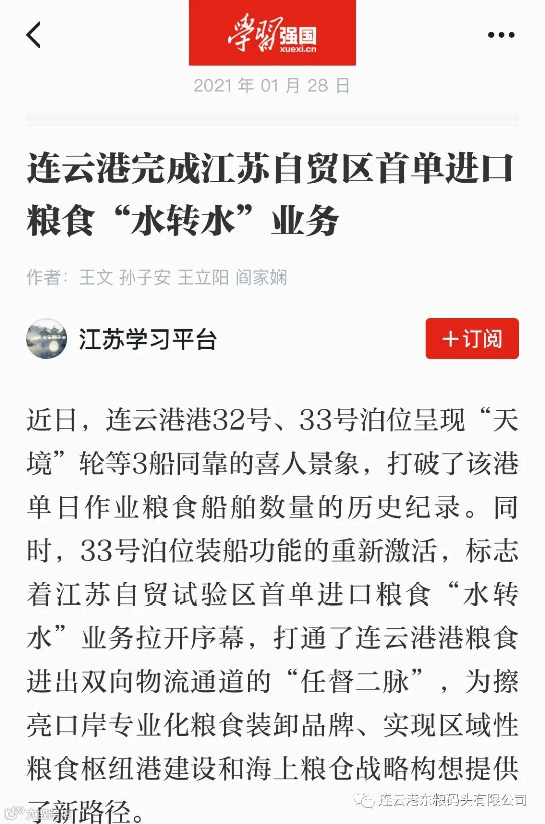 【公司要闻】公司粮食“水转水”业务登上“学习强国”