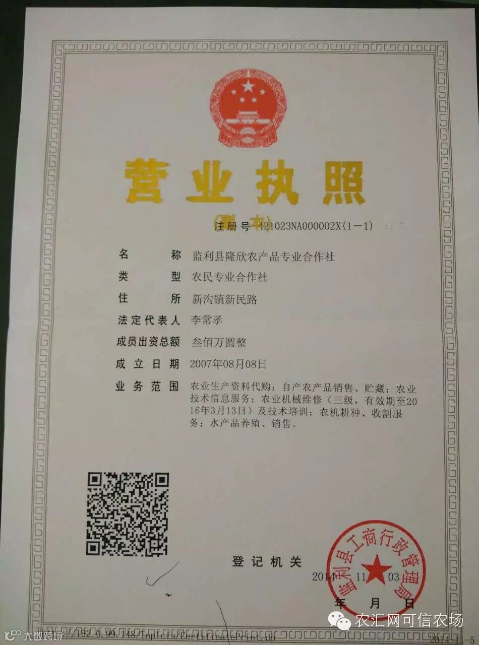 监利县隆欣农产品专业合作社成立于2007年8月8日,注册地址在监利县新沟镇新民路,法人代表李常孝。主要生产经营粮、棉、油、瓜果蔬菜,提供农机、生产资料、市场信息、农业科技等服务。现有成员120名,资产总额已达到500万元,建有一万平方米全程机械化温室育秧工厂一座,拥有各种农业机械设备30台套,建有水稻、红薯、马铃薯、西瓜、蔬菜等绿色食品基地5000多亩,带动农户3284户,幅射种植面积3万多亩,年生产规模2000万元。