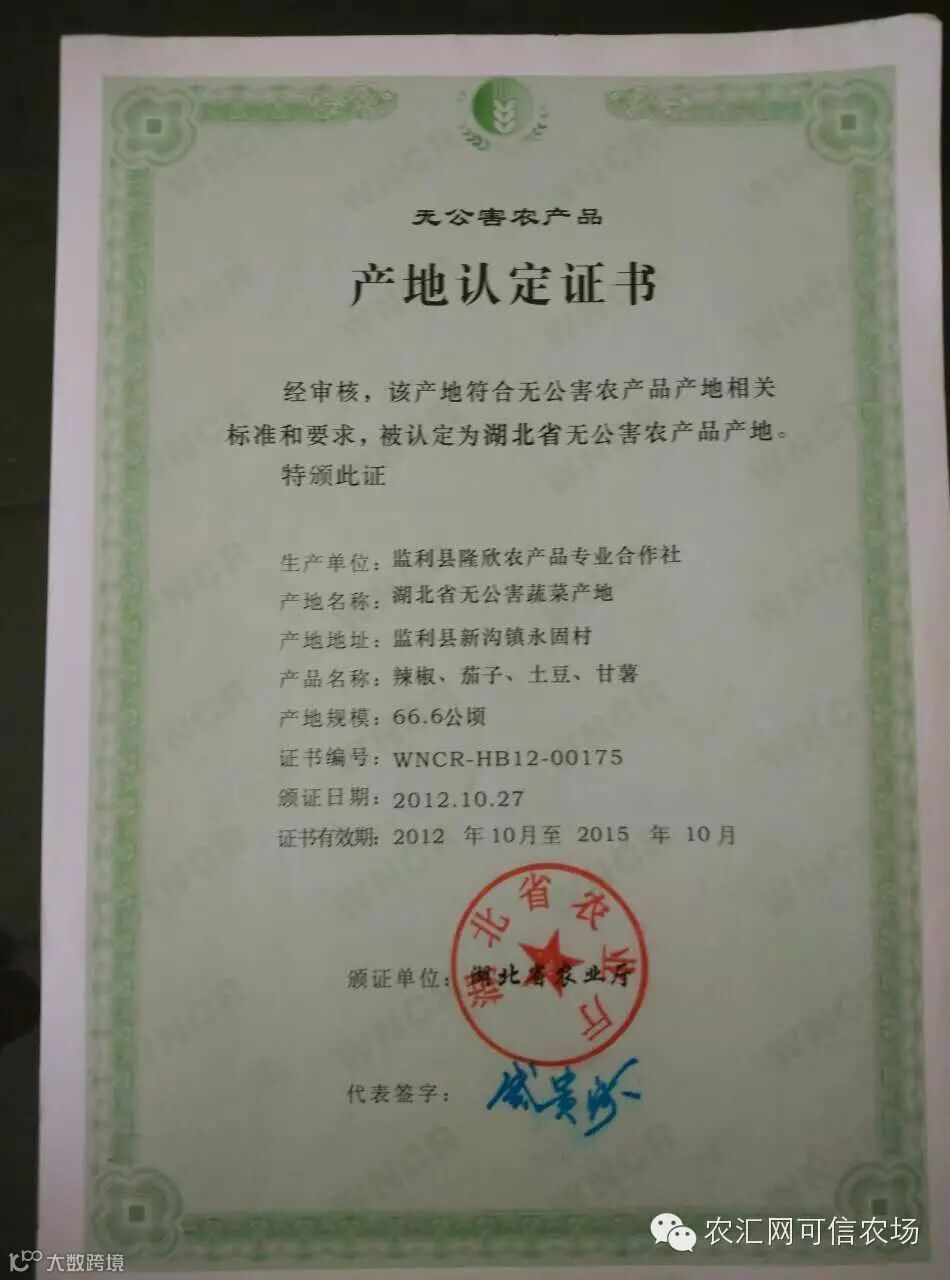 2013年,我们在荒湖农场和新沟镇流转地1000亩,建立了自己的核心试范基地。我们立足长远,实施品牌战略,已注册“隆欣农合”商标和四个无公害农产品认证标志,隆欣青茄子获得湖北首届名优蔬菜银奖。