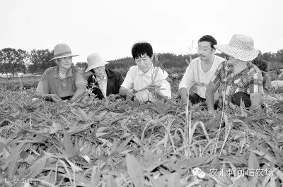 6.种红薯带富乡邻——国劳动模范、正阳县真阳镇乐堂村的叶启营(中)是有名的“红薯大王”,办有梅营红薯合作社。红薯移栽季节,为确保新剪薯苗的成活率,叶启营每天都会在大田里指导村民剪、栽薯苗。梅营红薯专业合作社每年红薯种植面积500多亩,可收获红薯100多万公斤。为带动周边村民富起来,叶启营致富不忘乡邻,每年都拿出2000多万株薯苗免费送给村民,引导村民种植红薯2000多亩。村民种红薯的收入比过去翻了一番。