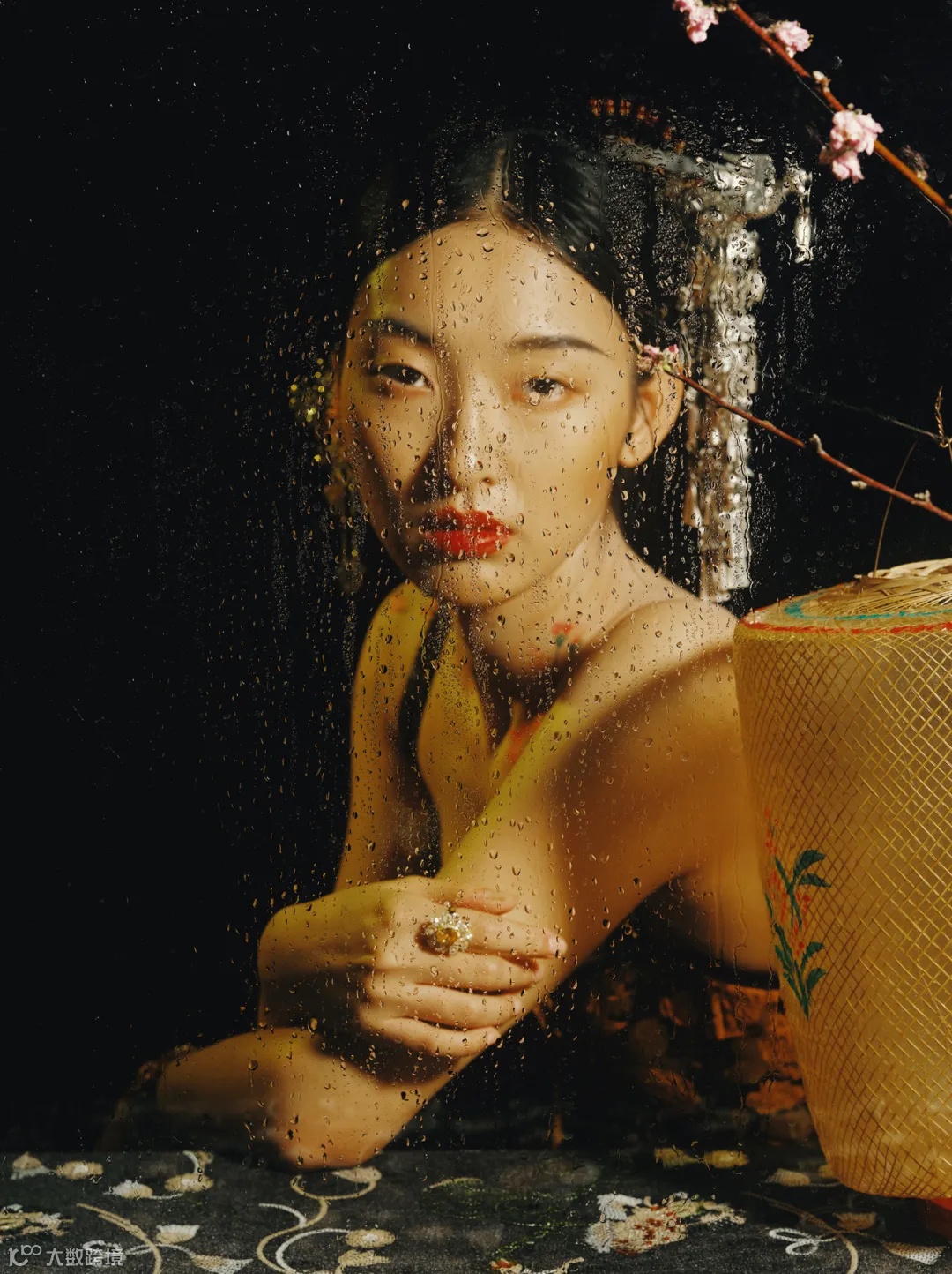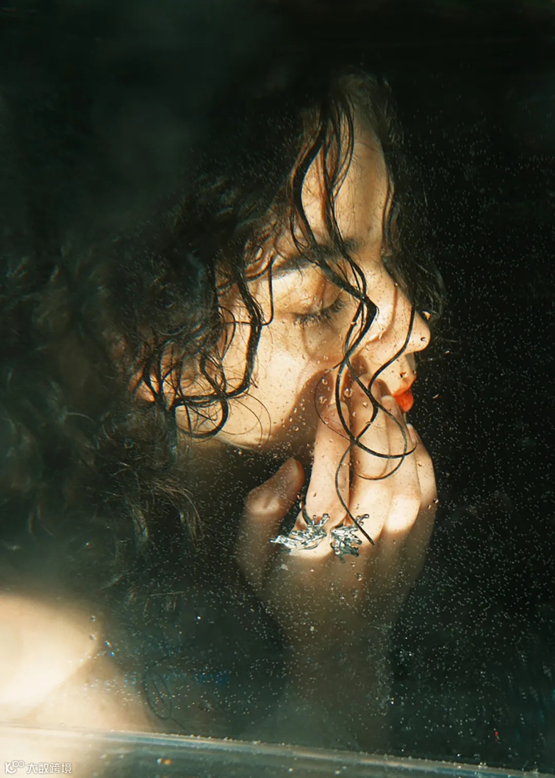 这一幅作品,我透过玻璃,再在玻璃上喷上水珠,给人物营造出朦胧的视觉效果。