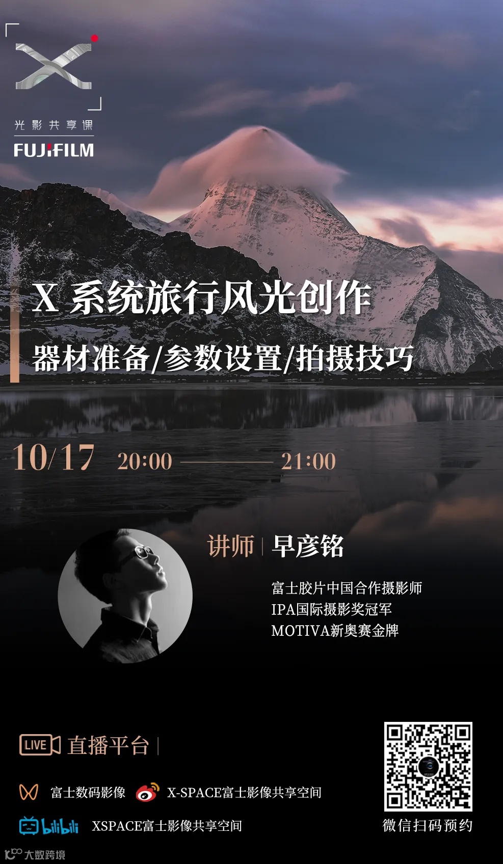 金秋时节,正是采风的好时机。摄影师早彦铭老师将为大家揭示X系列相机在旅行风光摄影中的独特魅力。从城市街角到自然山水,让我们一同领略X系统如何将世界的绚丽色彩尽收镜头。
