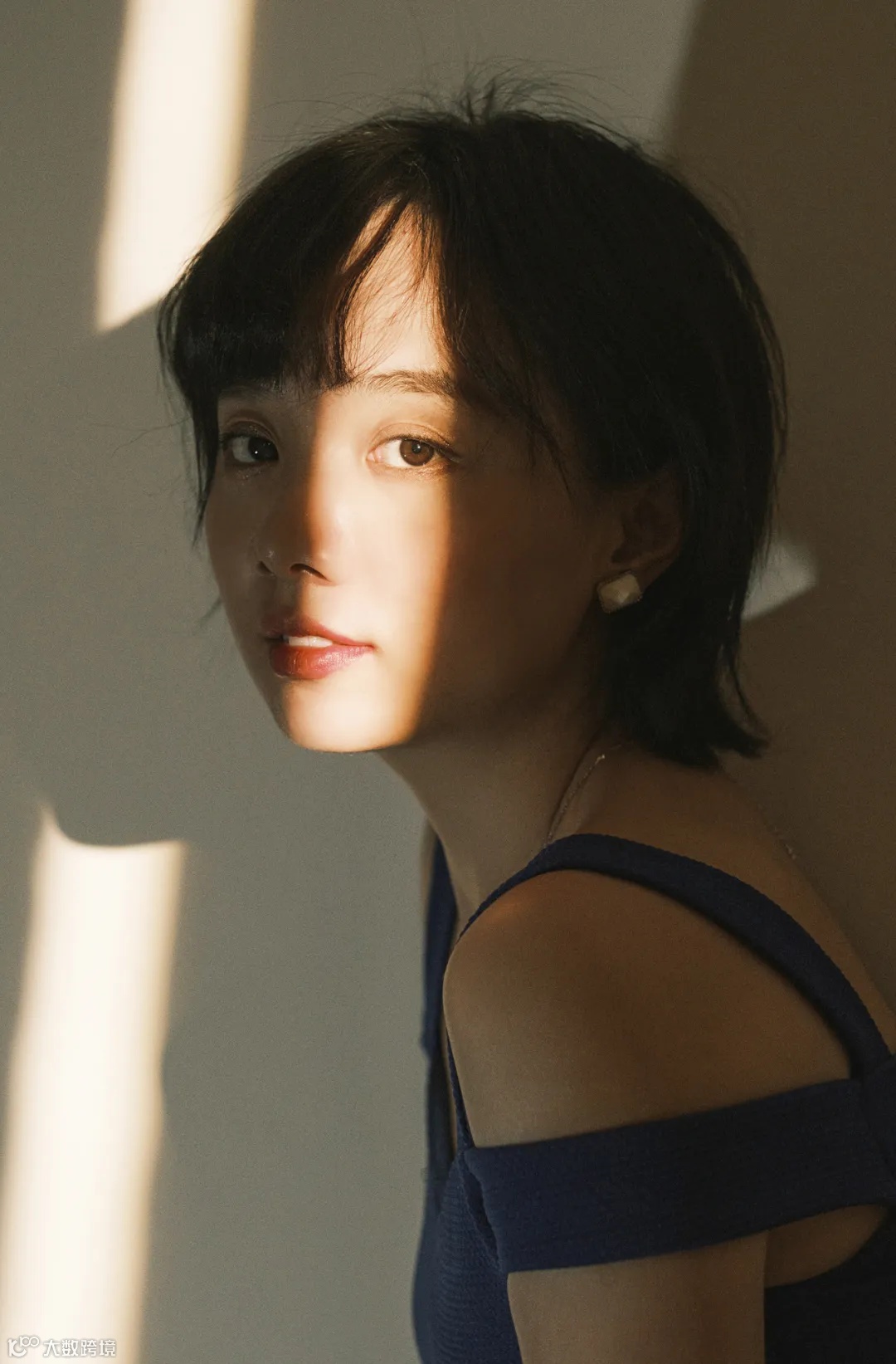这幅作品是我带着学员在上海的一个别墅里拍摄的,当时我想带着大家拍摄去年非常火的《繁花》。王家卫是一位非常擅长使用光影对比以及使用一些前景或者构建场景去突出人物主题的导演,所以我当时选择在上海的复古别墅里拍摄。我选择这个房间考虑的第一点是光线,在那里好不好控光。布光的前提是要控光,所以我拍摄的时候,会观察别墅当中有哪些房间是可以帮助我控光的。还有这个房间的陈设非常有复古感,有暗色的窗帘、非常复古的壁纸和家具。