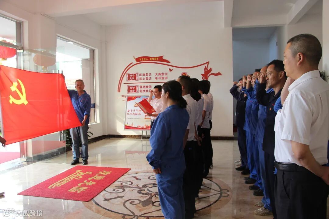 在鲜红的党旗下,预备党员高举右手,面向党旗庄严宣誓,承诺以共产党员的标准来严格要求自己,牢记初心使命,在各自岗位上发挥党员的先锋模范作用,以实际行动向建党100周年献礼。