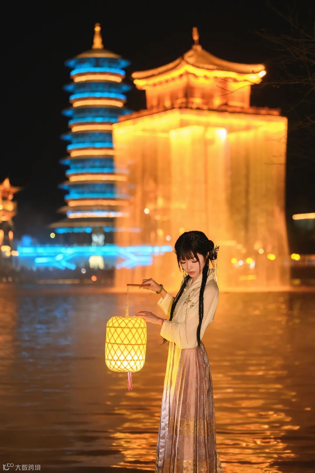 然而,凭借尼克尔 Z 70-200mm f/2.8 VR S镜头的强大性能,我成功地捕捉到了令人惊艳的夜景人像,模特仿佛置身于一座梦幻般的“空中楼阁”前,与背后的夜景融为一体,构成了一幅美丽的画面。